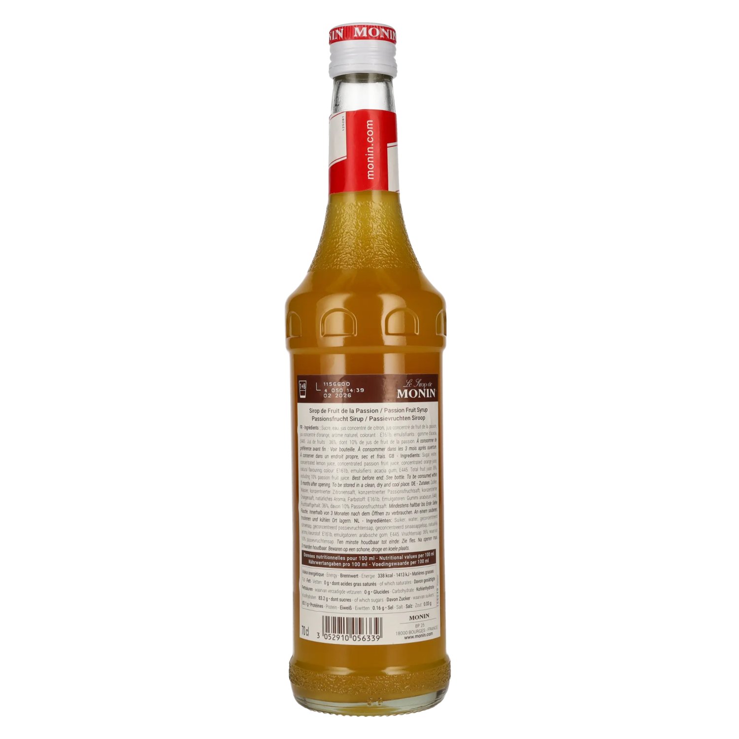 Ingrediënten:Zucker, Wasser, konzentrierter Zitronensaft, konzentrierter Passionsfruchtsaft, konzentrierter Orangensaft, natürliches Aroma, Farbstoff E161b, Emulgatoren: Gummi arabicum, E445, Fruchtsaftgehalt: 36%, davon 10% Passionsfruchtsaft