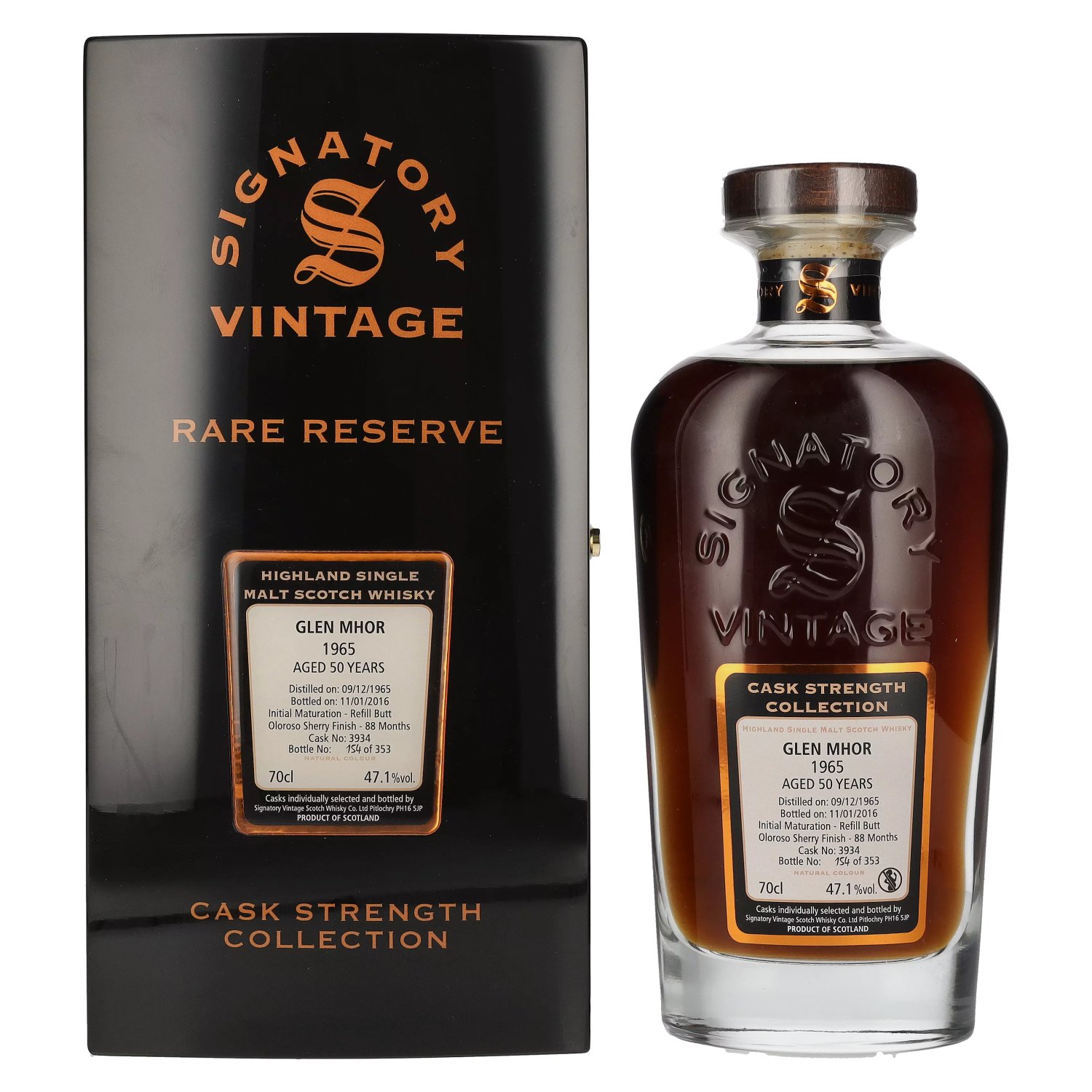 Signatory Vintage Glen Mhor RARE RESERVE 50 Years Old Cask Strength 1965 47,1% Vol. 0,7l in Holzkiste
