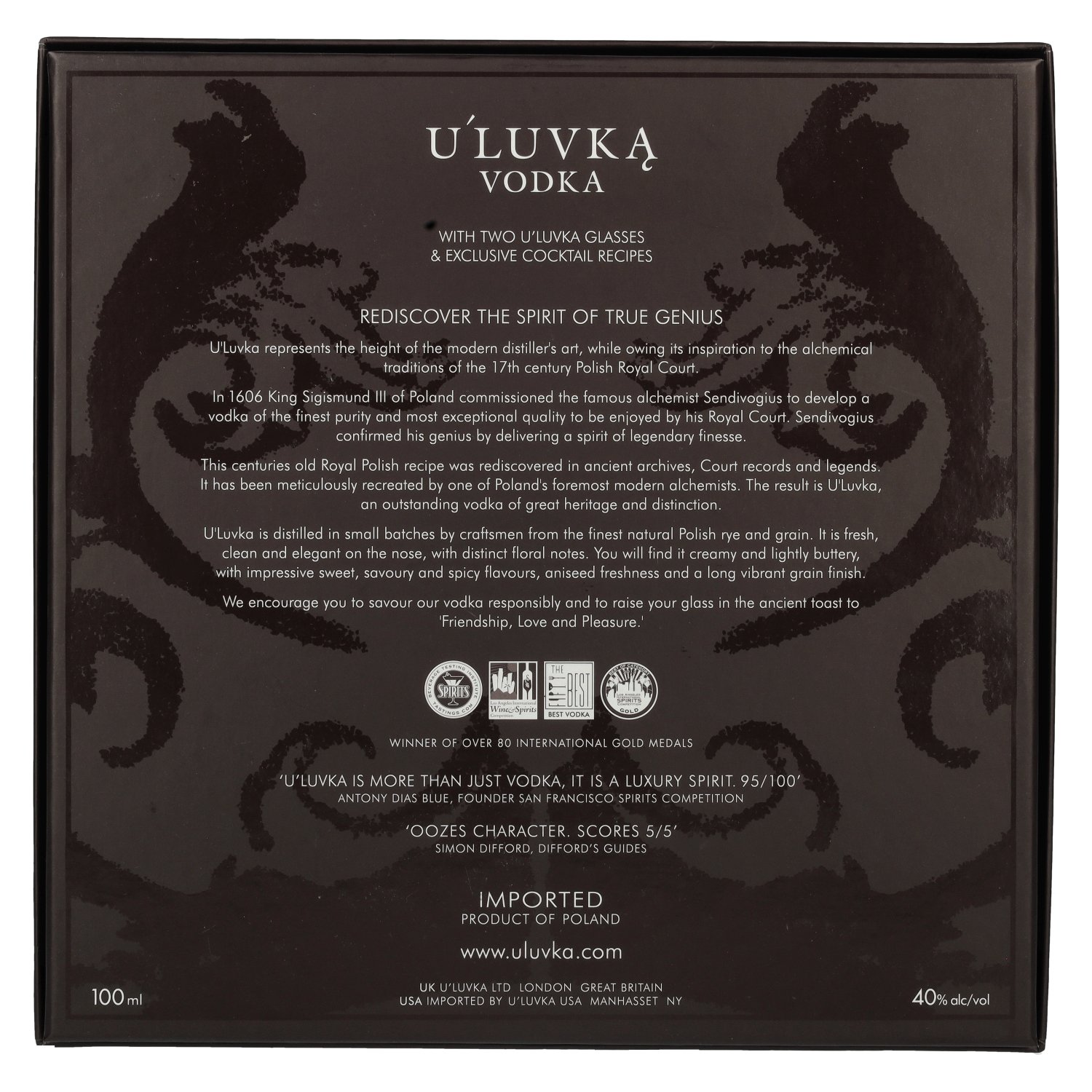 Fabrikant/Distilleerderij:U'Luvka Ltd, 3a Berghem Mews, Blythe Road, W14 0HN London, Großbritannien