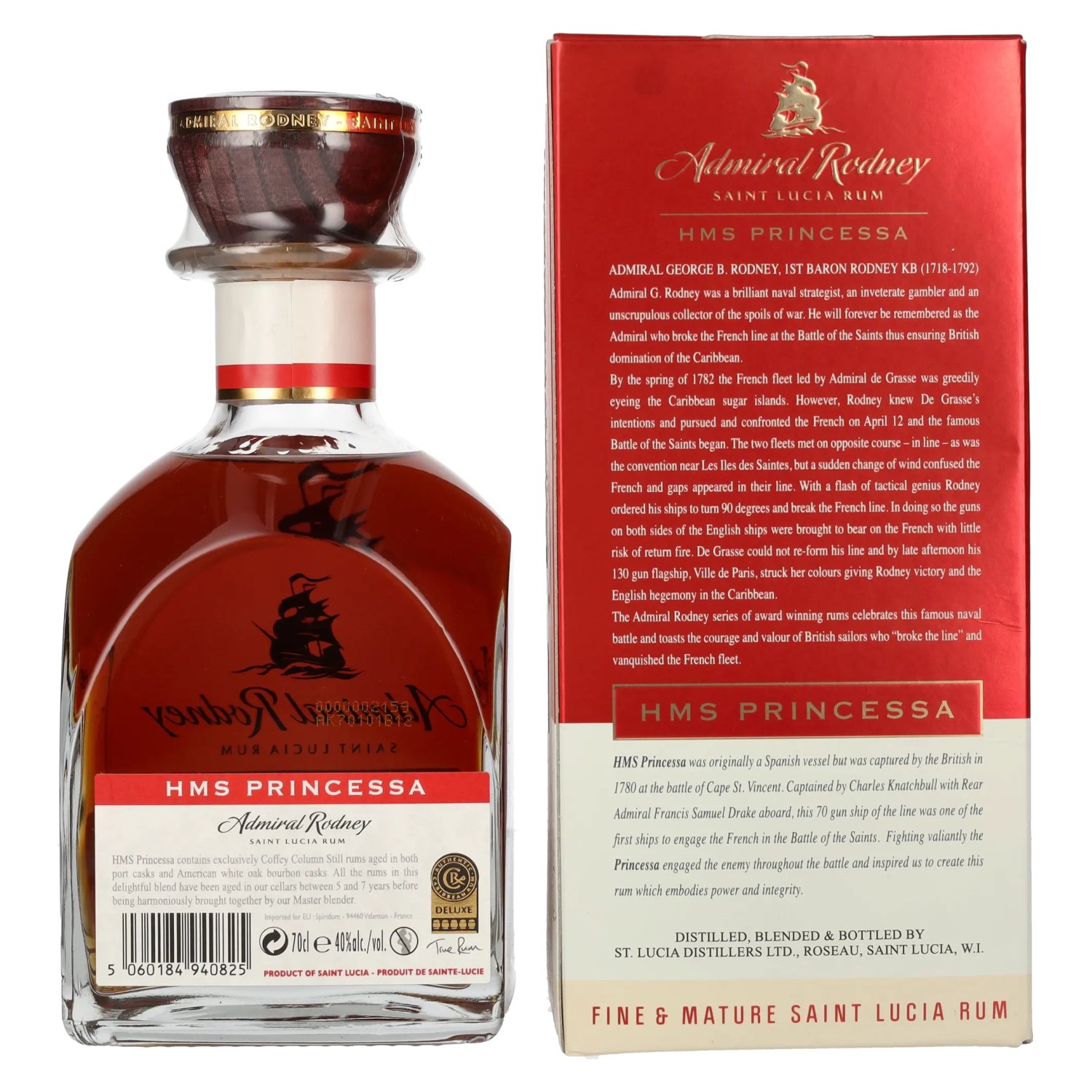 Admiral Rodney HMS PRINCESSA Fine & Mature Saint Lucia Rum 40% Vol. 0,7l in geschenkverpakking