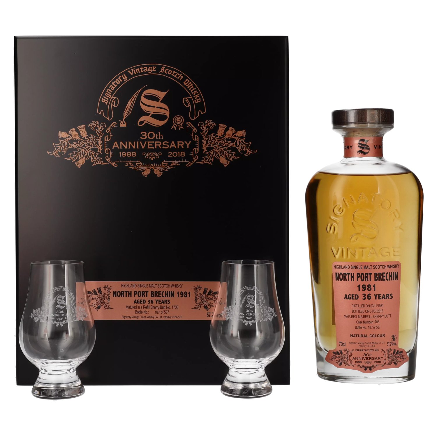 Signatory Vintage NORTH PORT BRECHIN 36 Years Old 30th ANNIVERSARY 1981 57,2% Vol. 0,7l in Holzkiste met 2 Bril