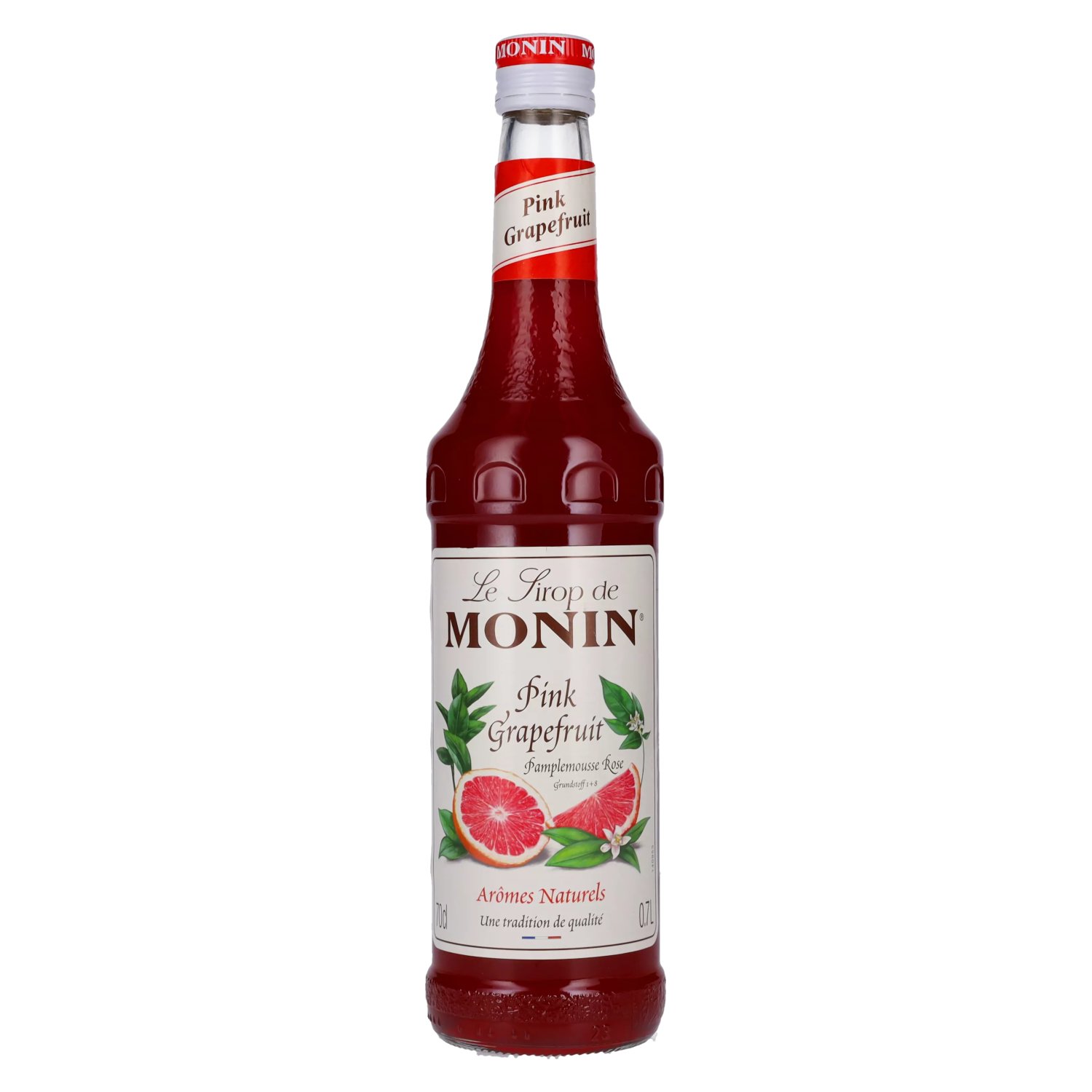 Ingrediënten:Zucker, Wasser, Säuerungsmittel: Citronensäure, konzentrierter rosa Grapefruitsaft, natürliches Aroma, Emulgatoren: Gummi arabicum, E445, natürliches Grapefruitaroma, Farbstoff: E129.