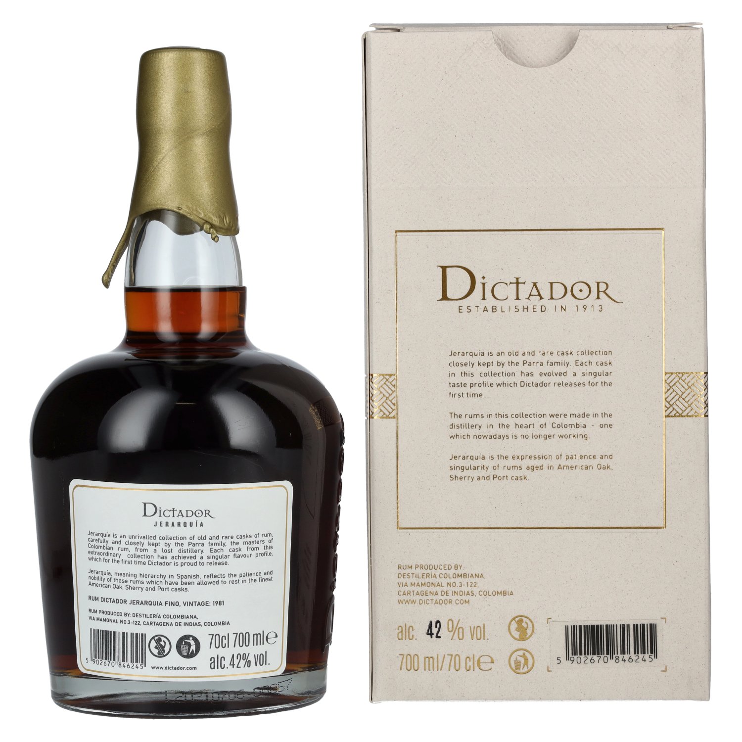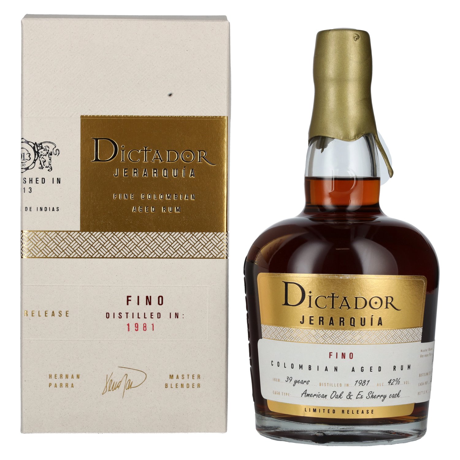 Dictador JERARQUÍA 39 Years Old FINO Rum 1981 42% Vol. 0,7l in geschenkverpakking
