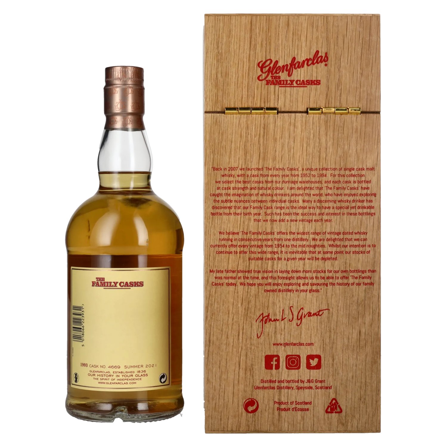 Glenfarclas THE FAMILY CASKS Single Cask SUMMER 2021 4th Fill Butt 1993 57,6% Vol. 0,7l in Holzkiste