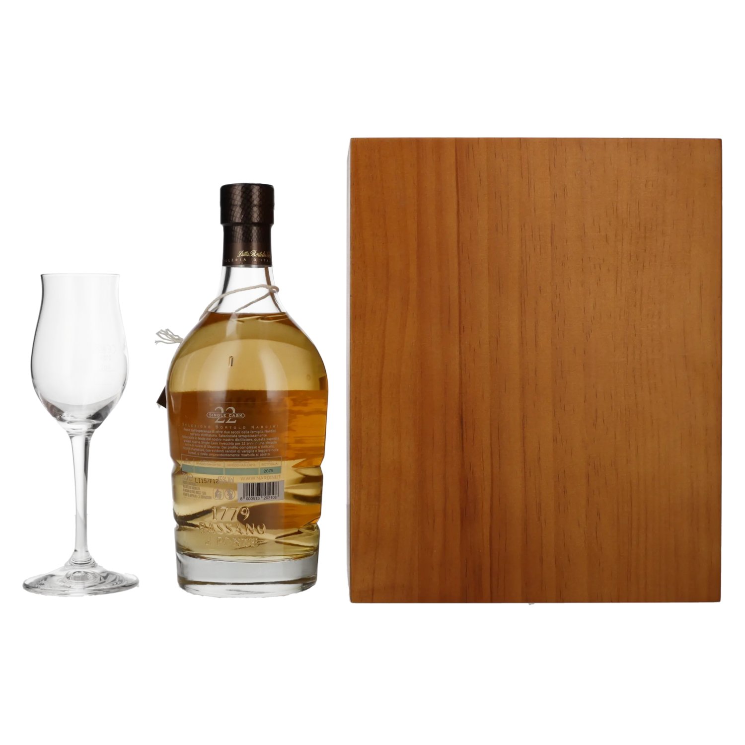 Nardini Grappa Riserva 22 ANNI Single Cask 45% Vol. 0,7l in Holzkiste met Glas