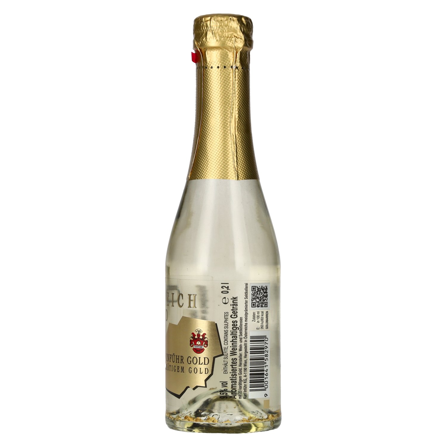 Ingrediënten:87,75% Wein (Trauben, Antioxidationsmittel: Kaliummetabisulfit, Wasser, Saccharose, Kohlensäure, 0,25% Goldlikör (Wein, Destillat aus Wein oder getrockneten Weintrauben, Wasser, Saccharose, Farbstoff: Blattgold, Pfirsicharoma), Pfirsicharoma, Säureregulatoren (enthält Äpfelsäure (D,L-;L-) und/oder Citronensäure), Antioxidationsmittel (Schwefeldioxid/Kaliummetabisulfit)