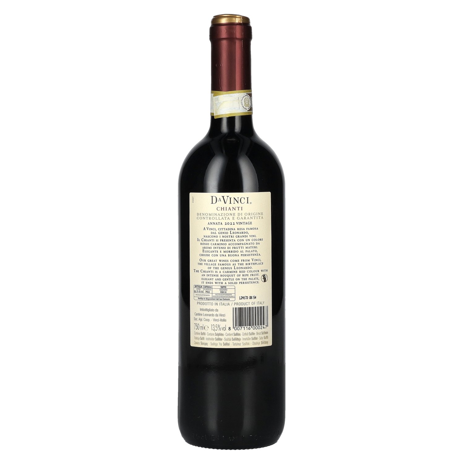Fabrikant/Distilleerderij:Cantine Leonardo da Vinci Soc. Agr. Coop., Via Provinciale di Mercatale, 291, 50059 Vinci (FI), Italien
