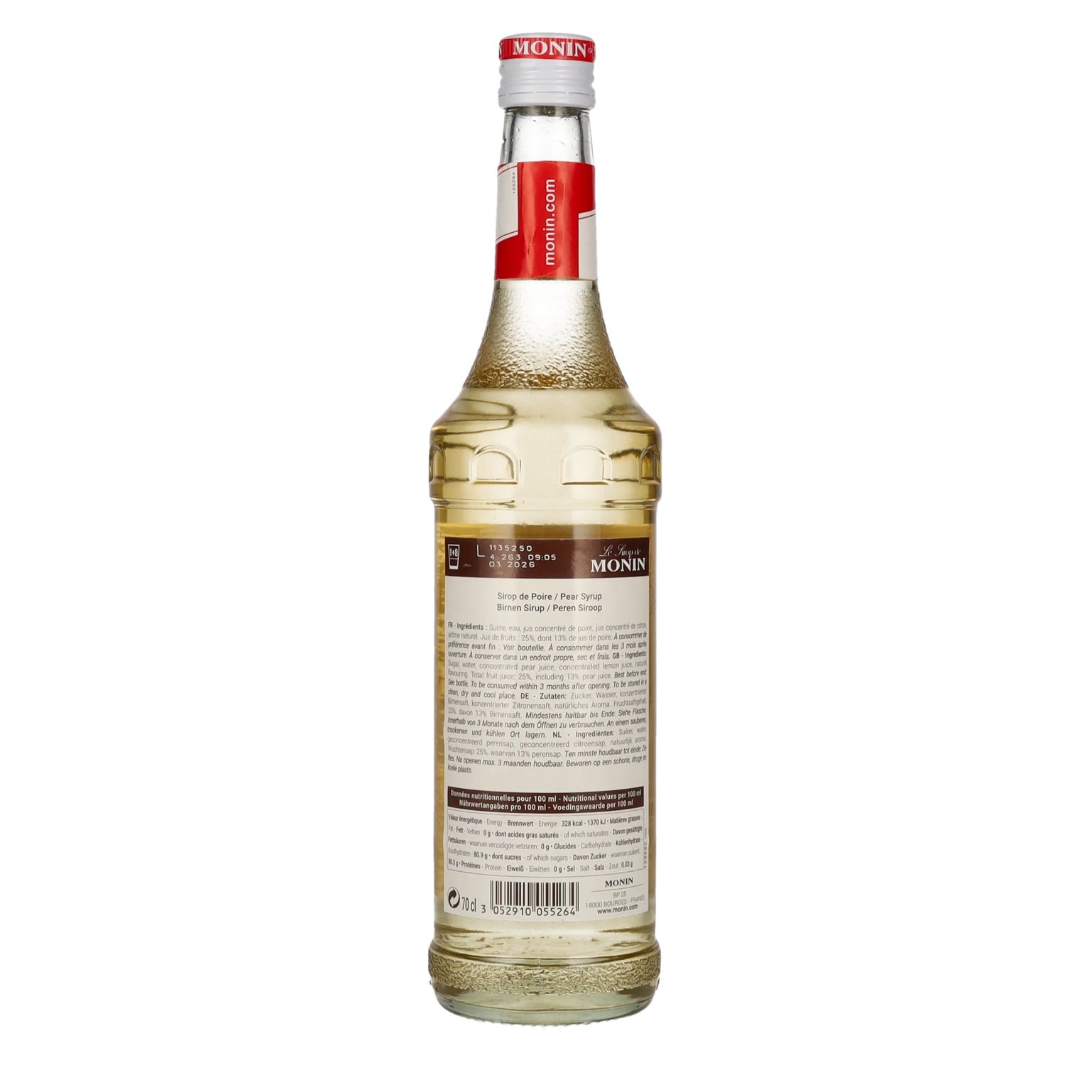 Ingrediënten:Zucker, Wasser konzentrierter Birnensaft, konzentrierter Zitronensaft, natürliches Aroma, Fruchtsaftgehalt 25%, davon 13% Birnensaft.