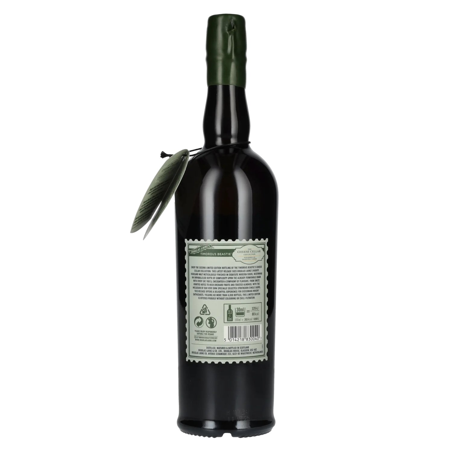 De Timorous Beastie Cheese Cellar Madeira Cask Finish Limited Edition is een uitzonderlijke en zeer gelimiteerde botteling van Douglas Laing, die is gecreëerd als onderdeel van de populaire Remarkable Regional Malts serie. Deze speciale editie van de Proefnotitie: Kleur: Warm goud met een amberkleurige tint.