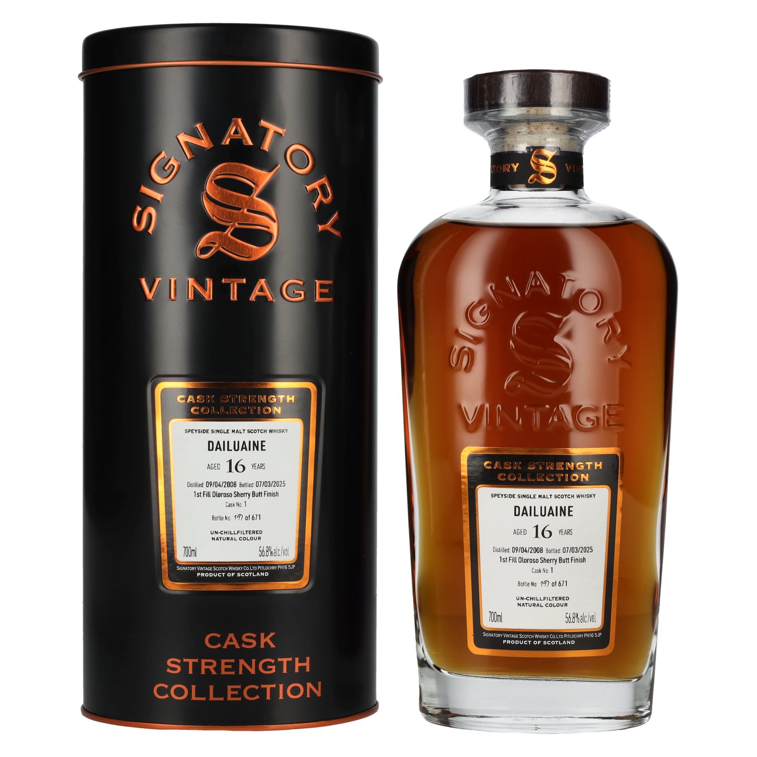 Signatory Vintage DAILUAINE 16 Years Old 1st Fill Oloroso Cask Strength #1 2008 56,8% Vol. 0,7l in Tinbox