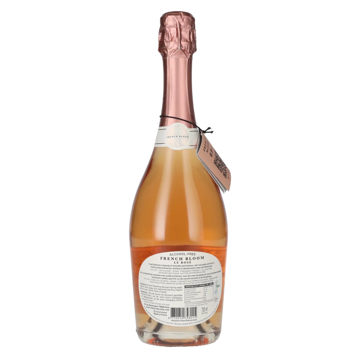 Ingrediënten:French Sparkling Gensac spring water, organic white grape juice, dealcoholized wine, organic lemon juice, natural flavor of grape