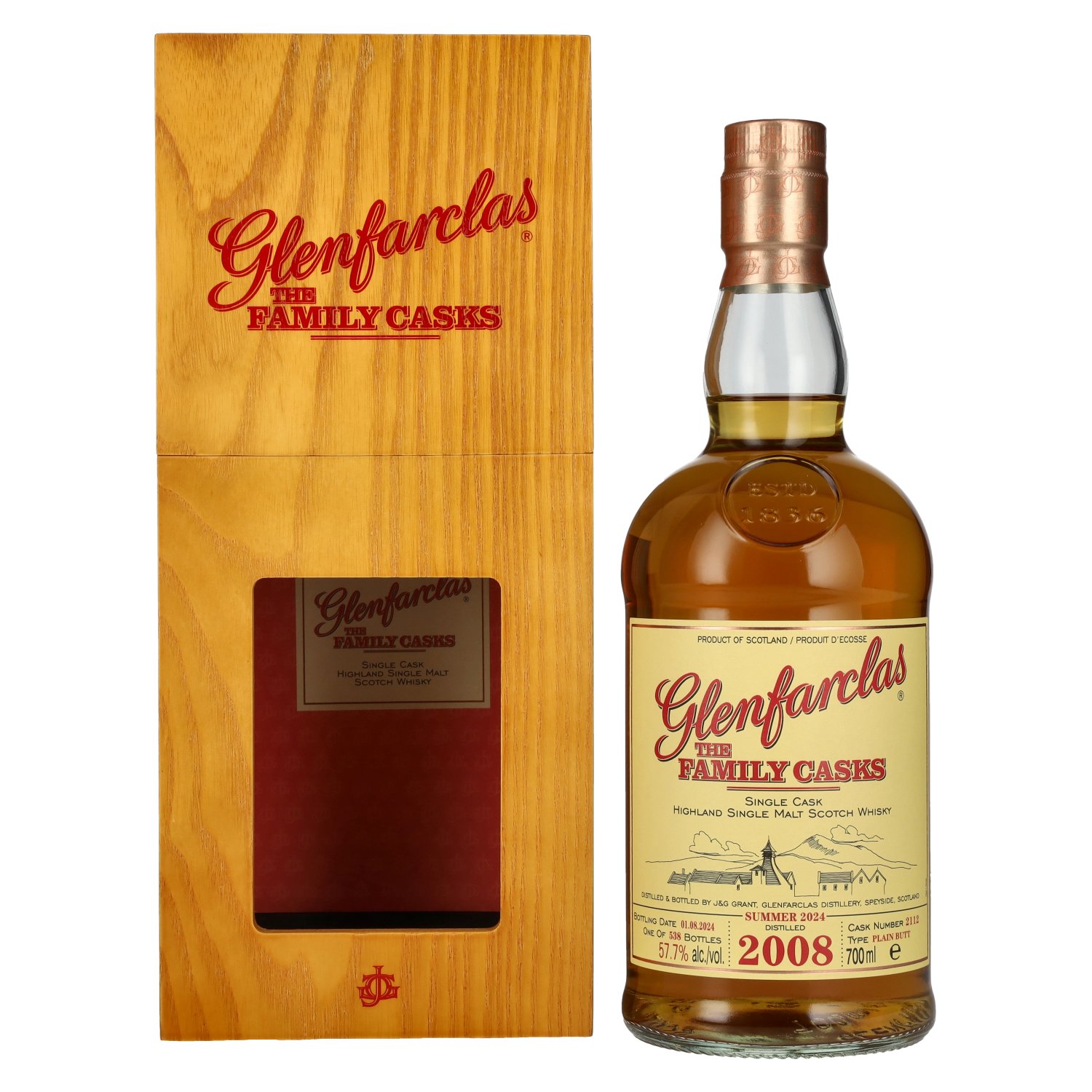 Glenfarclas THE FAMILY CASKS Single Cask SUMMER 2024 Plain Butt #2112 2008 57,7% Vol. 0,7l in Holzkiste