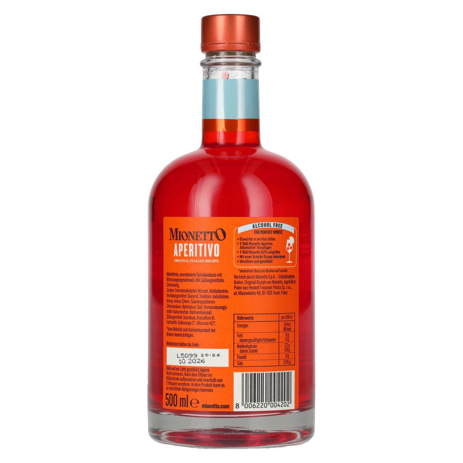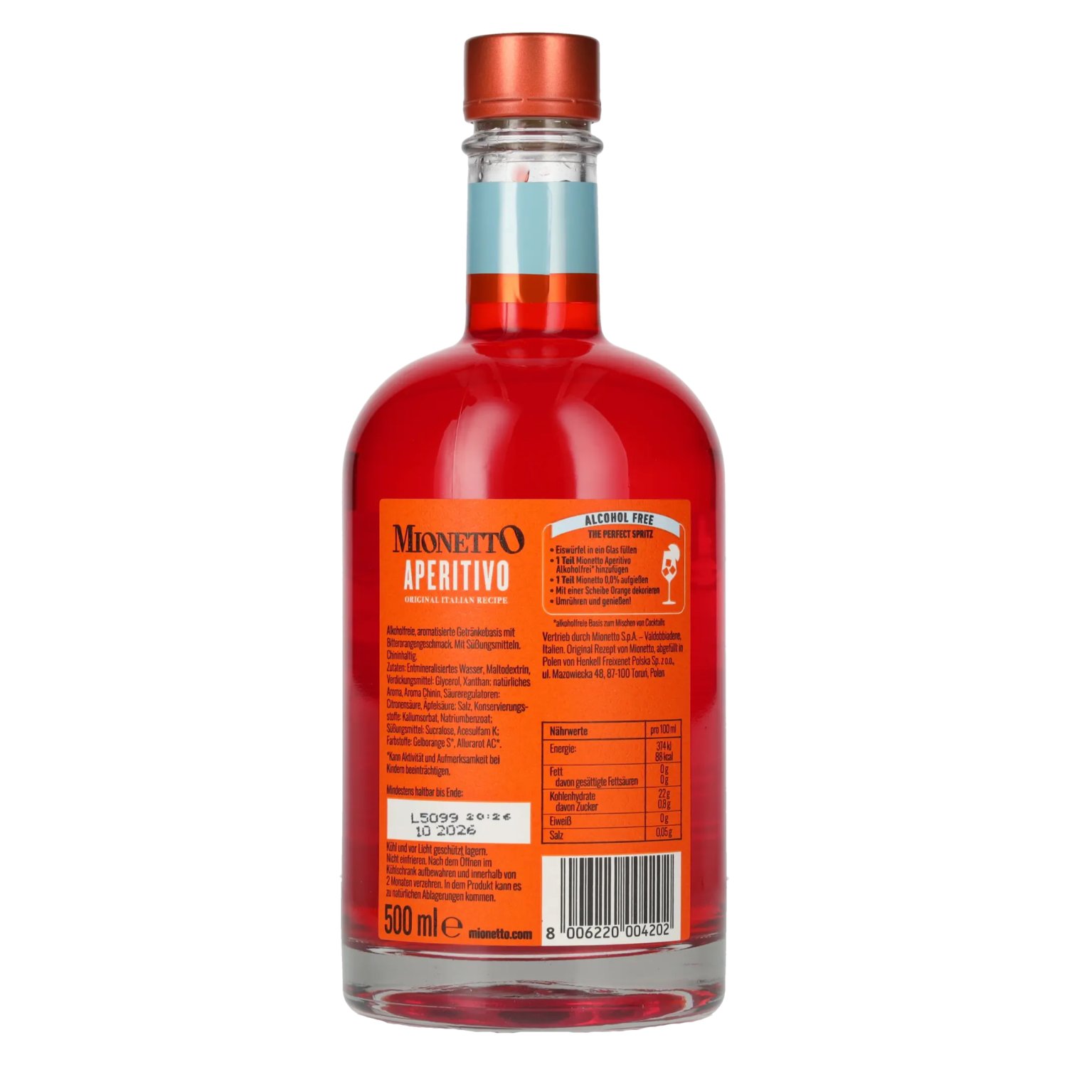 Fabrikant/Distilleerderij:Mionetto Spa, Via Col de Rove, 2, 31049 Valdobbiadene TV, Italien