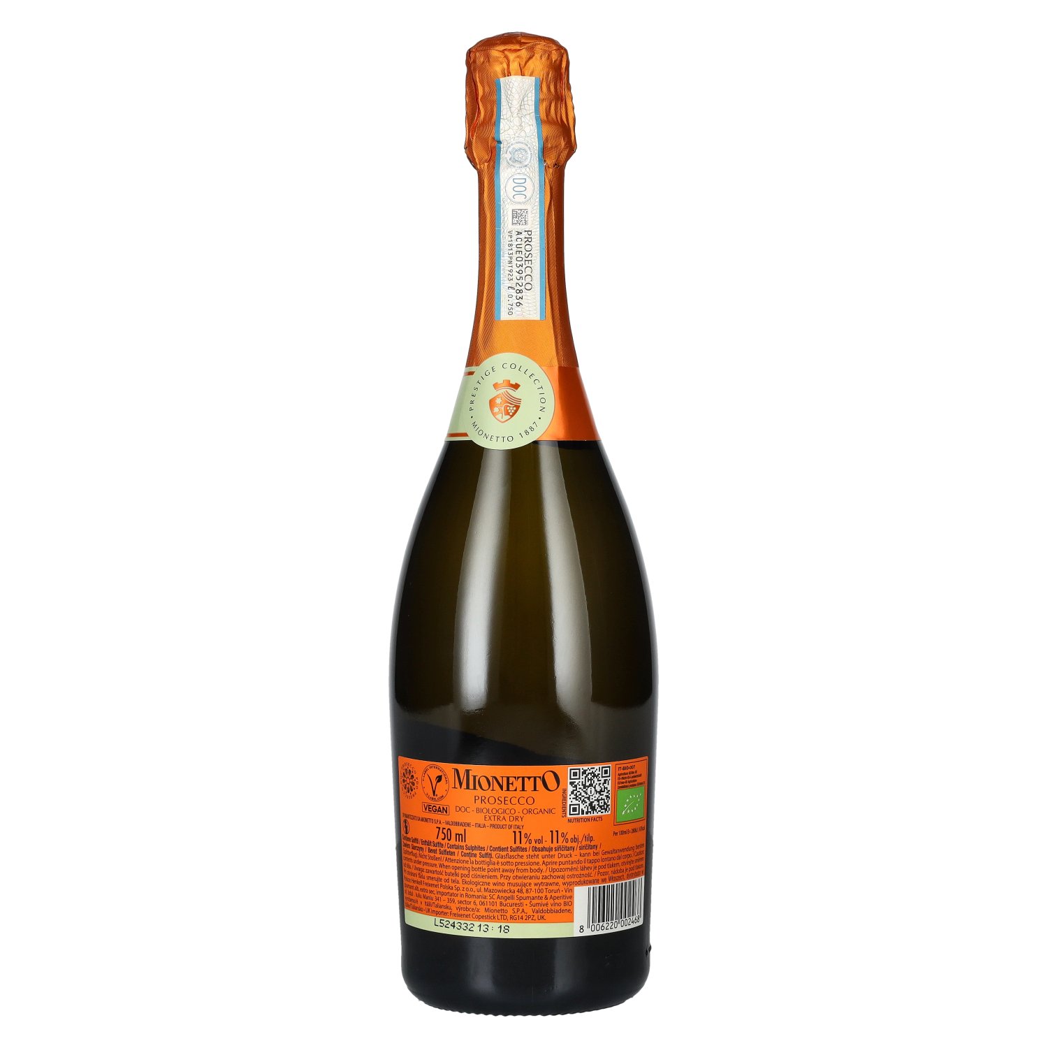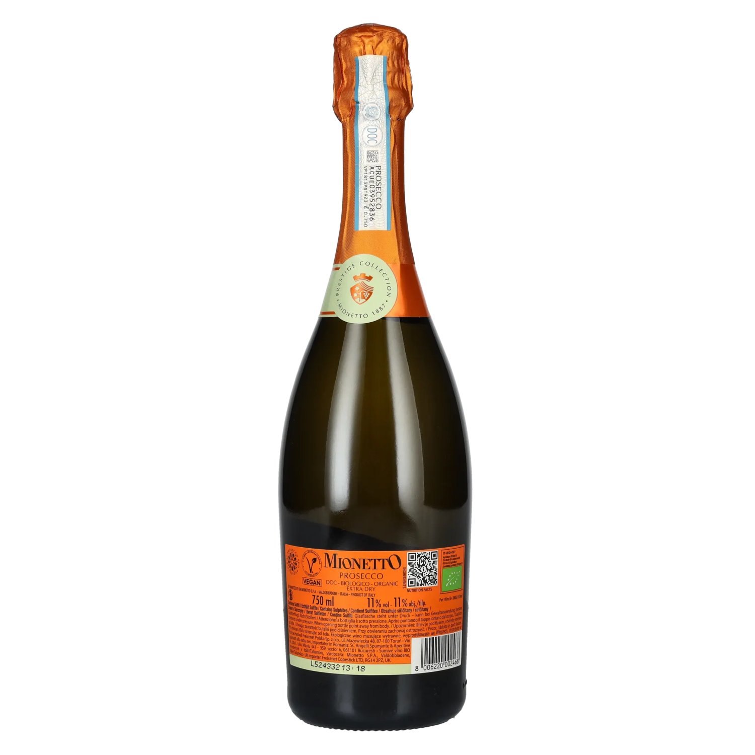 Fabrikant/Distilleerderij:Mionetto Spa, Via Col de Rove, 2, 31049 Valdobbiadene TV, Italien