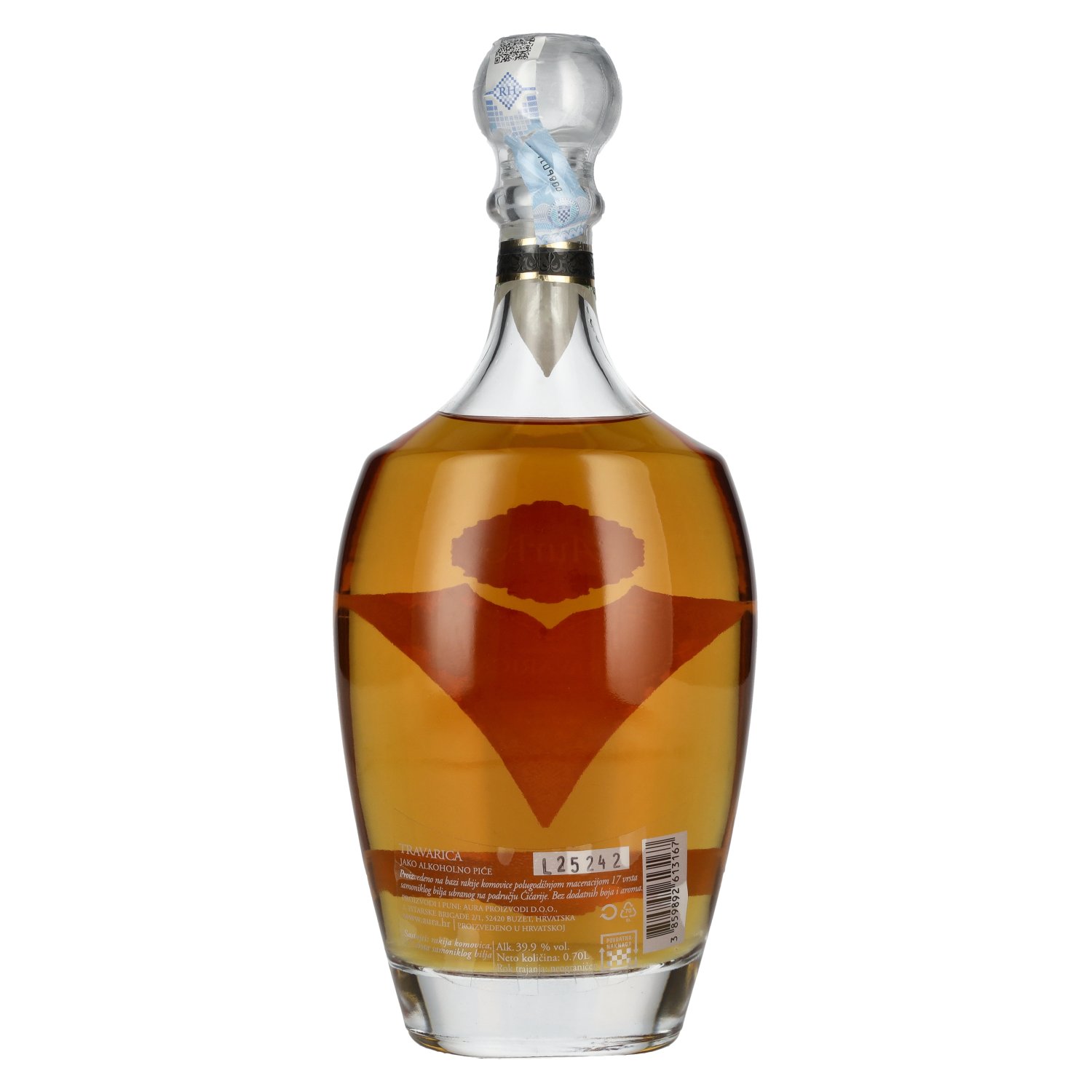 De Aura Travarica kruidenbrandewijn (Kroatisch: Aura Travarica - Rakija iz Hrvatske) is een traditionele maar expressieve kruidenbrandewijn uit Kroatië die diep geworteld is in de Istrische cultuur. Deze brandewijn wordt geproduceerd door de gerenomm Proefnotitie: Kleur: Licht amber met groenige reflecties.