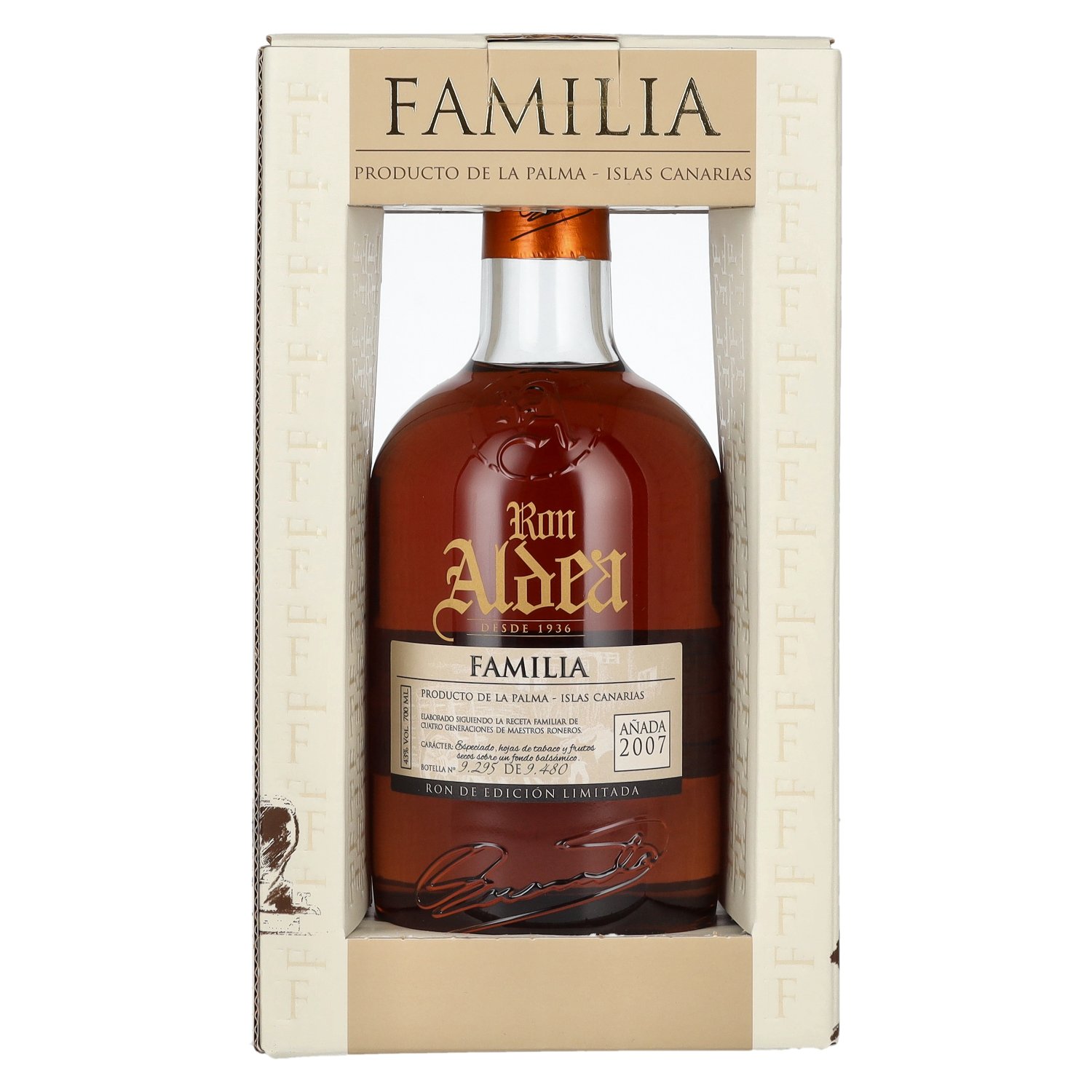 Fabrikant/Distilleerderij:Destilerias Aldea S.L., Camino el Melonar, 3, 38720 Charco Azul, Santa Cruz de Tenerife, Spanien
