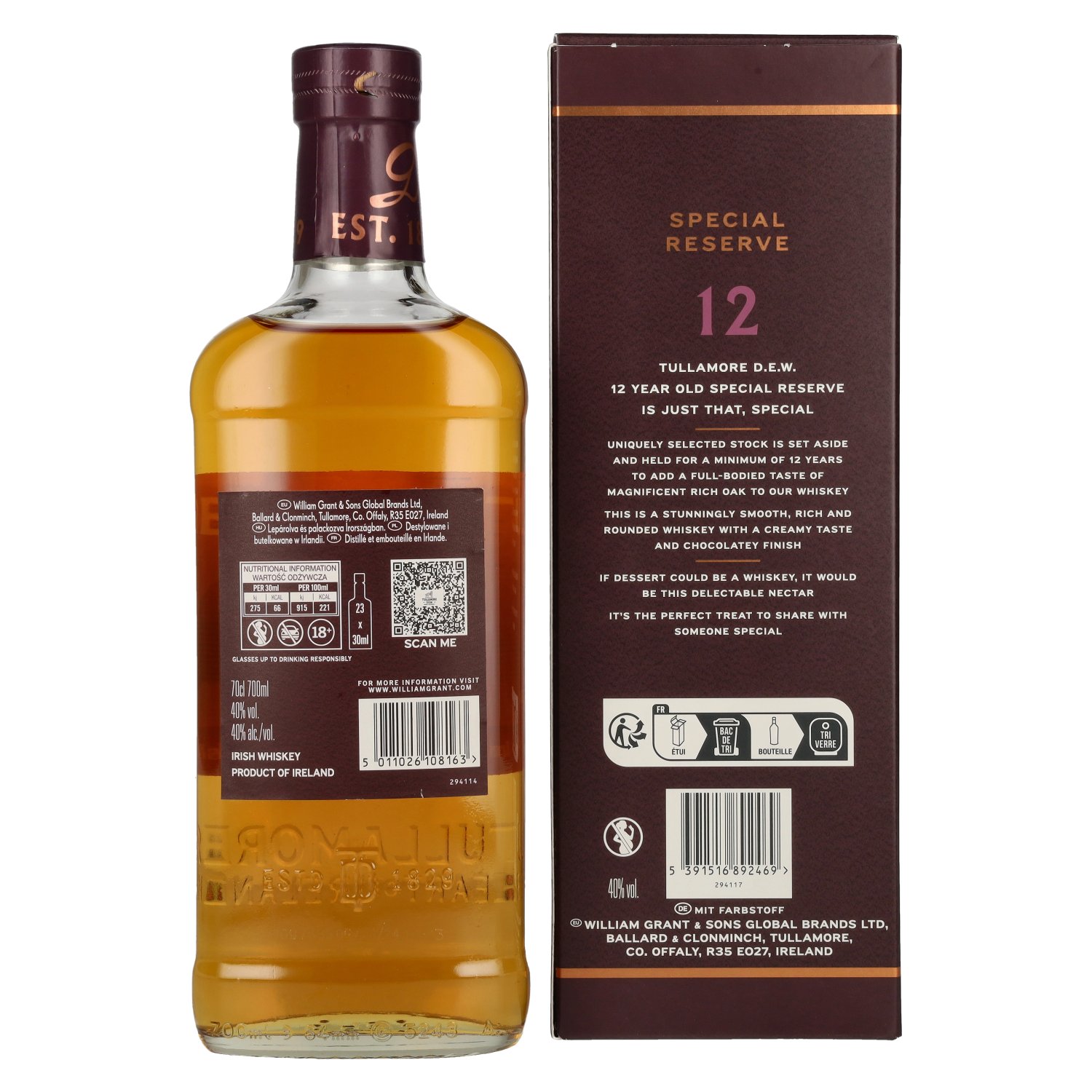 Fabrikant/Distilleerderij:Tullamore Dew Company LTD, Bury Quay, Tullamore, County of Offaly, Irland