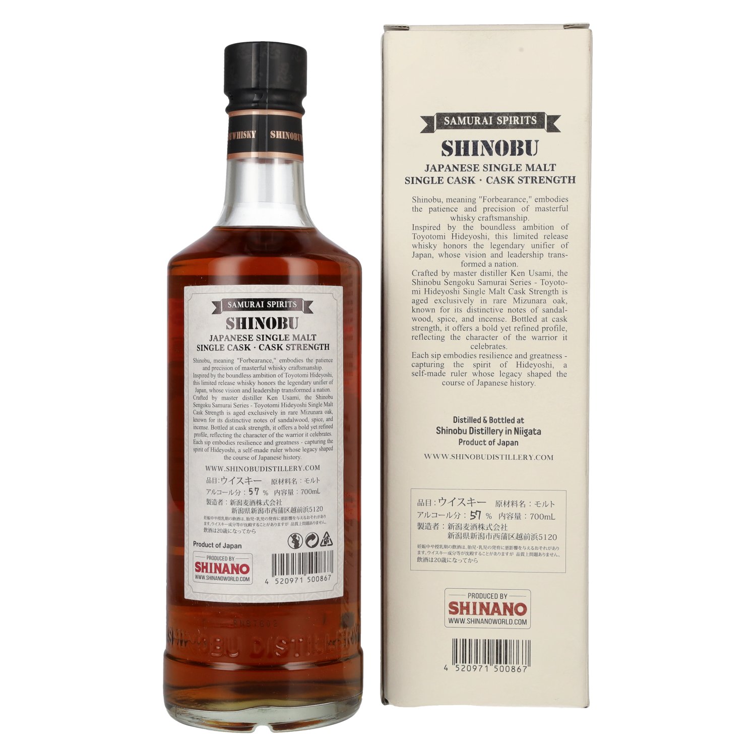Shinobu Japanese Single Malt Toyotomi Hideyoshi Mizunara Oak 57% Vol. 0,7l in geschenkverpakking