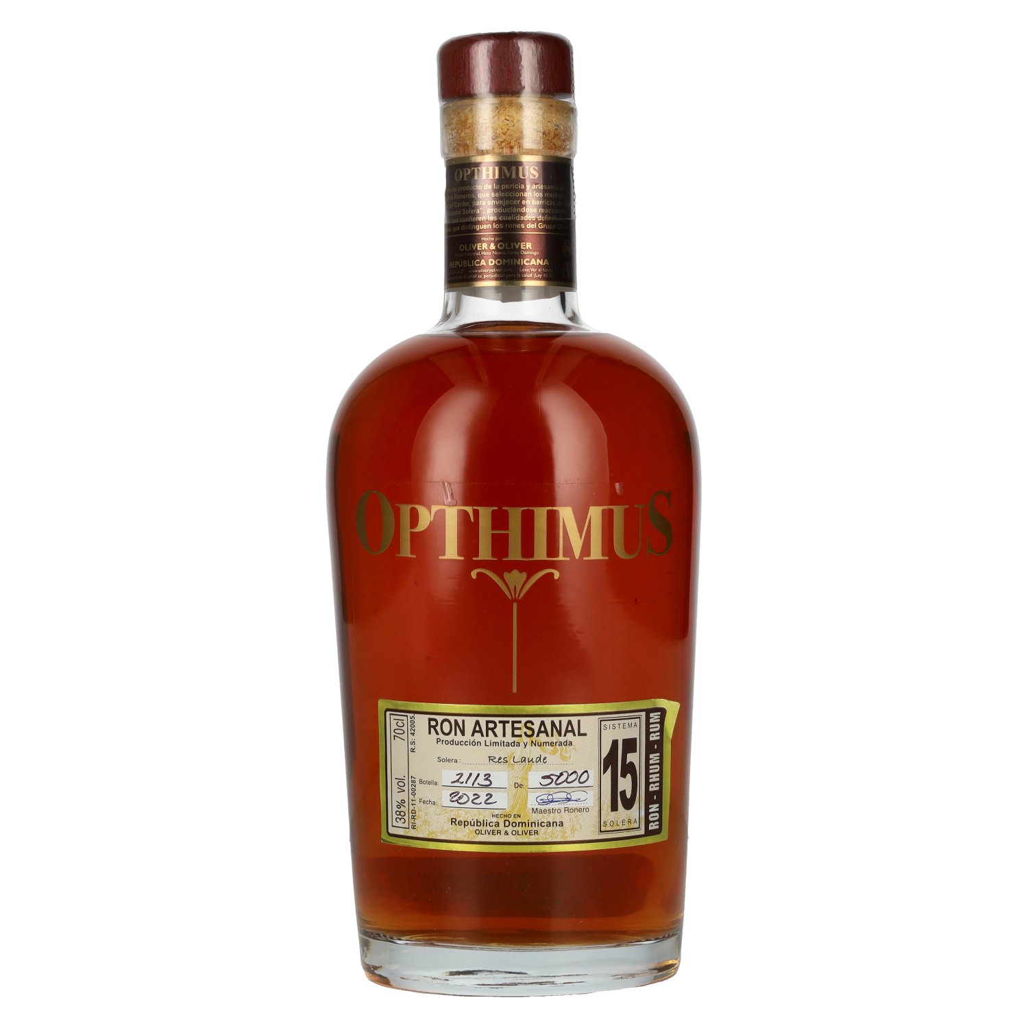 De Opthimus 15 Sistema Solera Res Laude 38% vol. 0,7 l is een volwassen Dominicaanse solera rum die staat voor een harmonieuze structuur, lange vatrijping en elegante zoetheid. Geproduceerd door Oliver & Oliver in de Dominicaanse Republiek, maakt dez Proefnotitie: Kleur: Diep amber met mahonie reflecties.