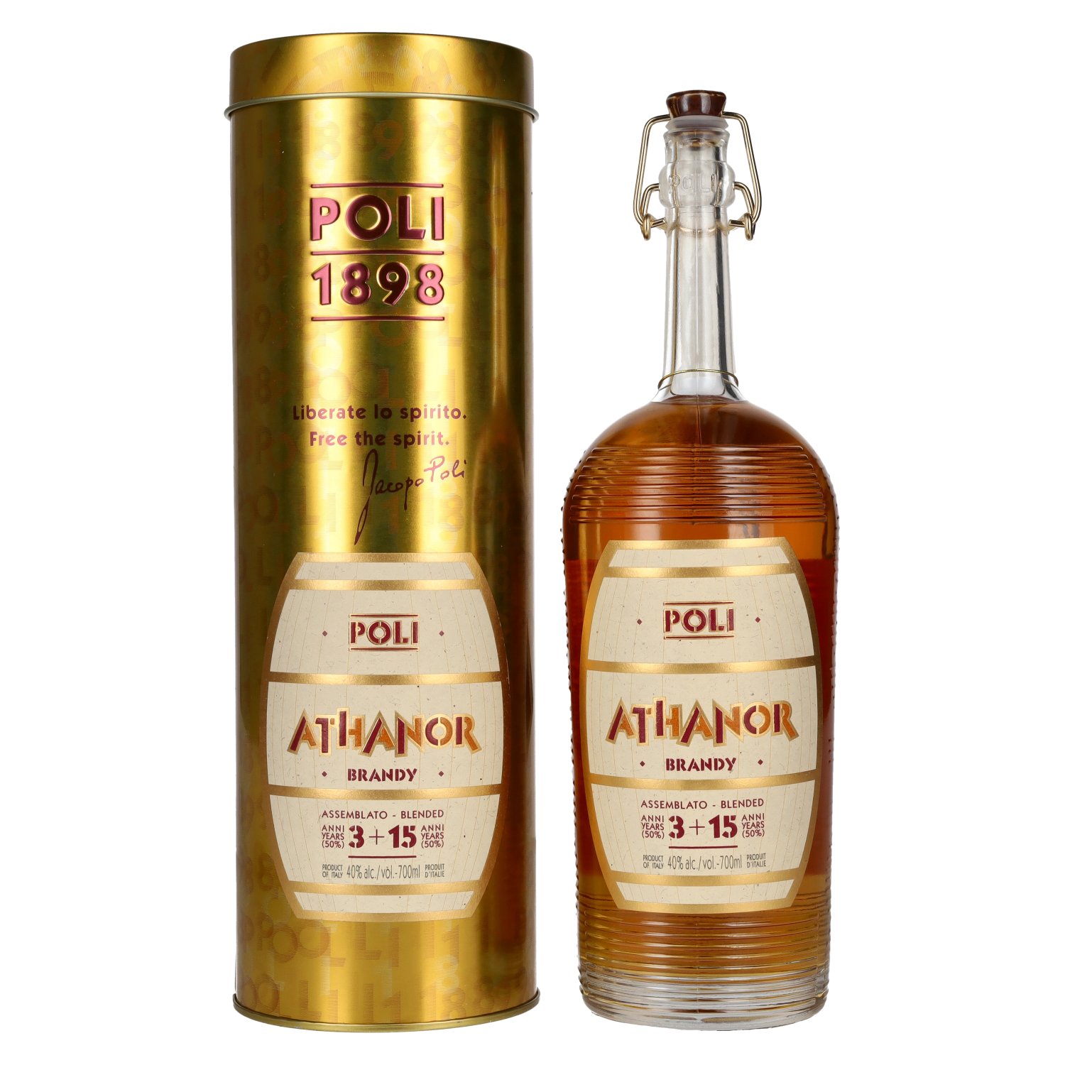 De Poli Brandy ATHANOR Italiano 40% Vol. 0,7 l in blikken doos is een Italiaanse brandy van hoge kwaliteit die op indrukwekkende wijze de traditionele kunst van het distilleren in de gerenommeerde Poli distilleerderij weerspiegelt. Deze Poli brandy i Proefnotitie: Kleur: Warm amber met gouden reflecties.