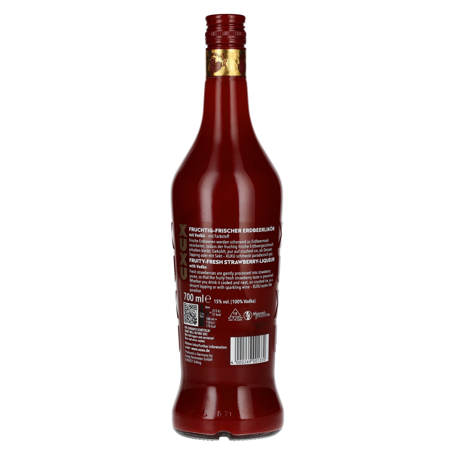 Ingrediënten:Wodka (Getreidedestillat), Erdbeermark, Zucker, Limettensaft aus Limettensaftkonzentrat, Aroma, Farbstoff: E129