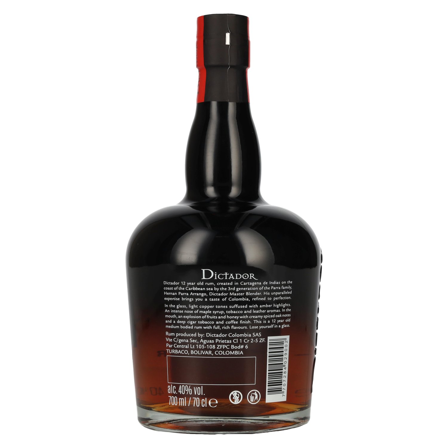 De Dictador 12 Years Old ICON RESERVE Colombian Rum is een uitstekende premium rum uit Colombia die bekend staat om zijn uitzonderlijke kwaliteit en verfijnde smaakprofiel. Met een alcoholpercentage van 40% vol. en een inhoud van 0,7 liter belichaamt Proefnotitie: Kleur: Diep amber met roodachtige reflecties.