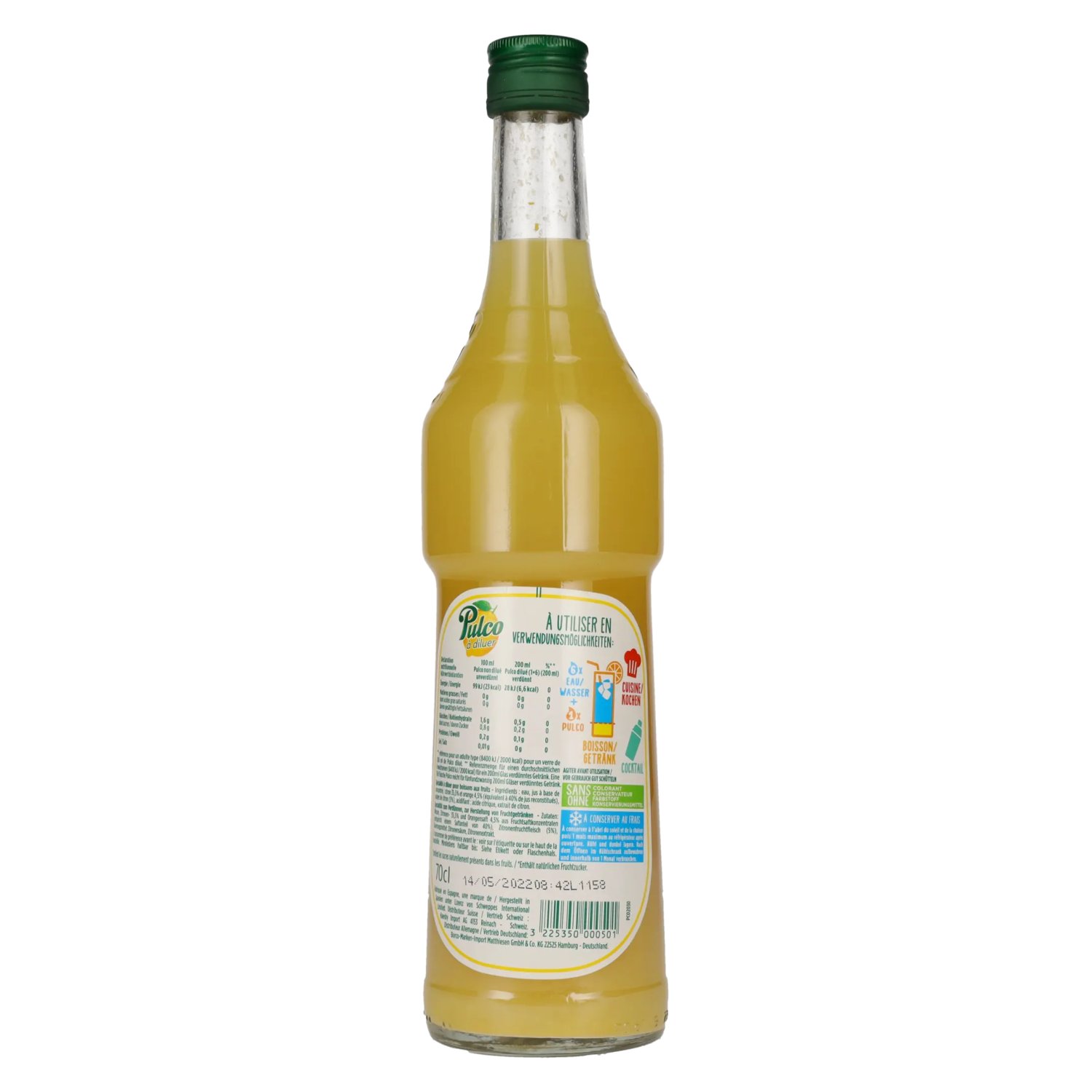 Ingrediënten:Wasser, Zitronen- (35,5%) und Orangensaft (4,5%) aus Konzentrat, Zitronenfruchtfleisch (5%), Säuerungsmittel: Citronensäure, natürlicher Zitronenextract.